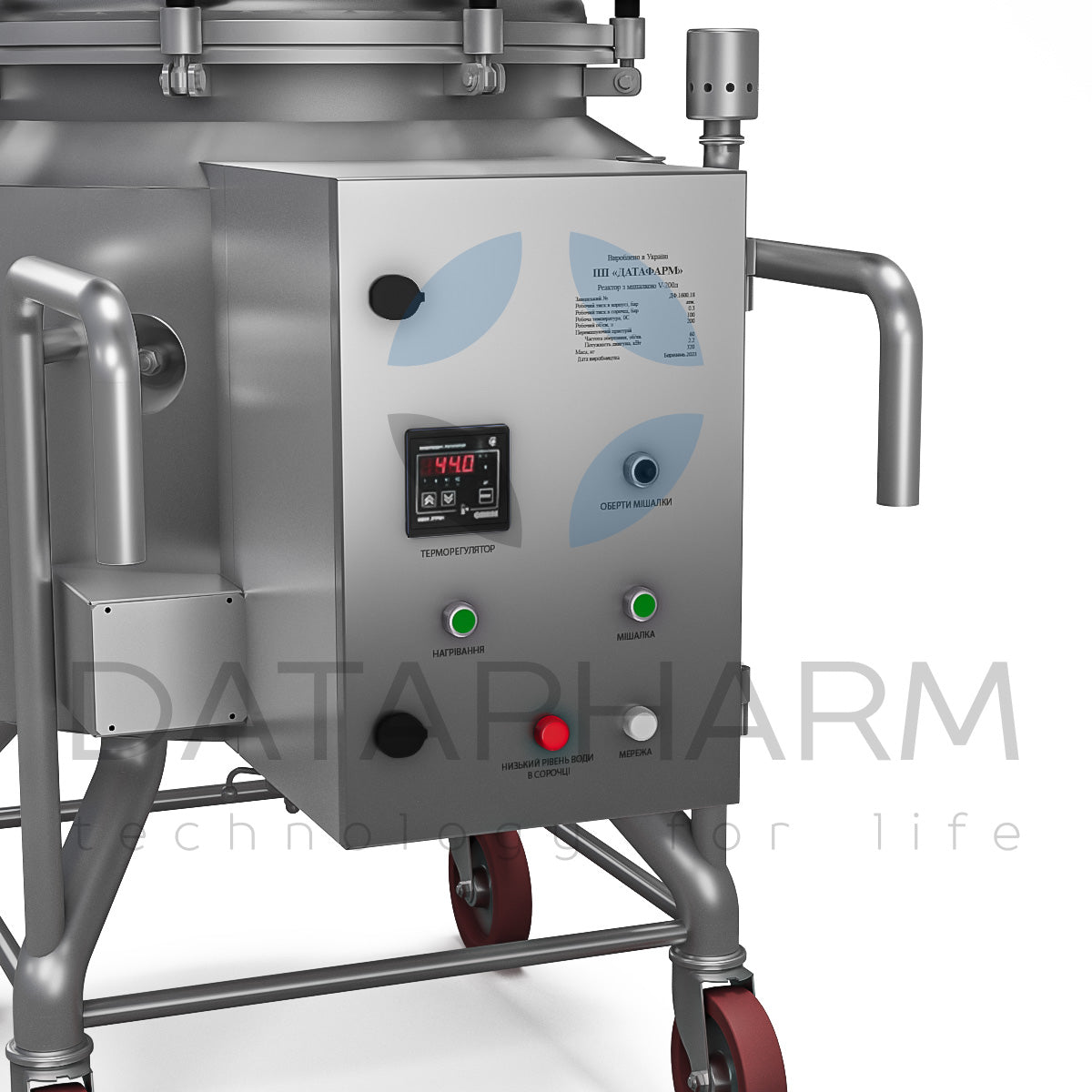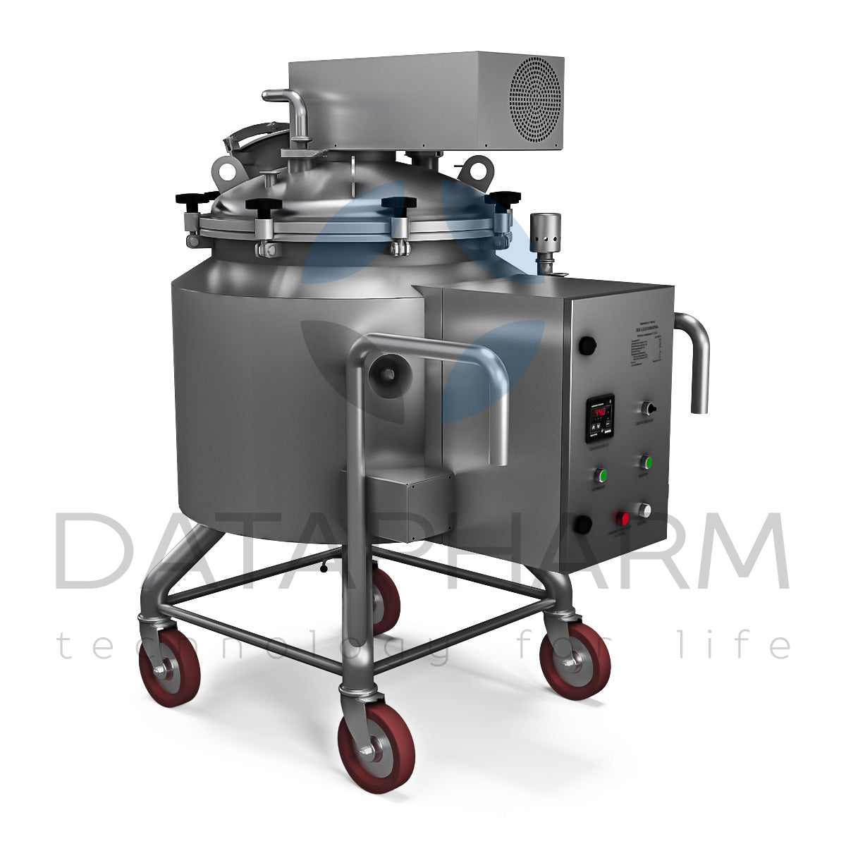 The DATAPHARM 200 L reactor with heating/cooling jacket and agitator is designed for mixing, thermal processing, and preparation of liquid and viscous products in pharmaceutical, chemical, and cosmetic industries. The sealed lid, thermal control jacket, polished interior, and reliable geared drive ensure process stability and full GMP compliance.