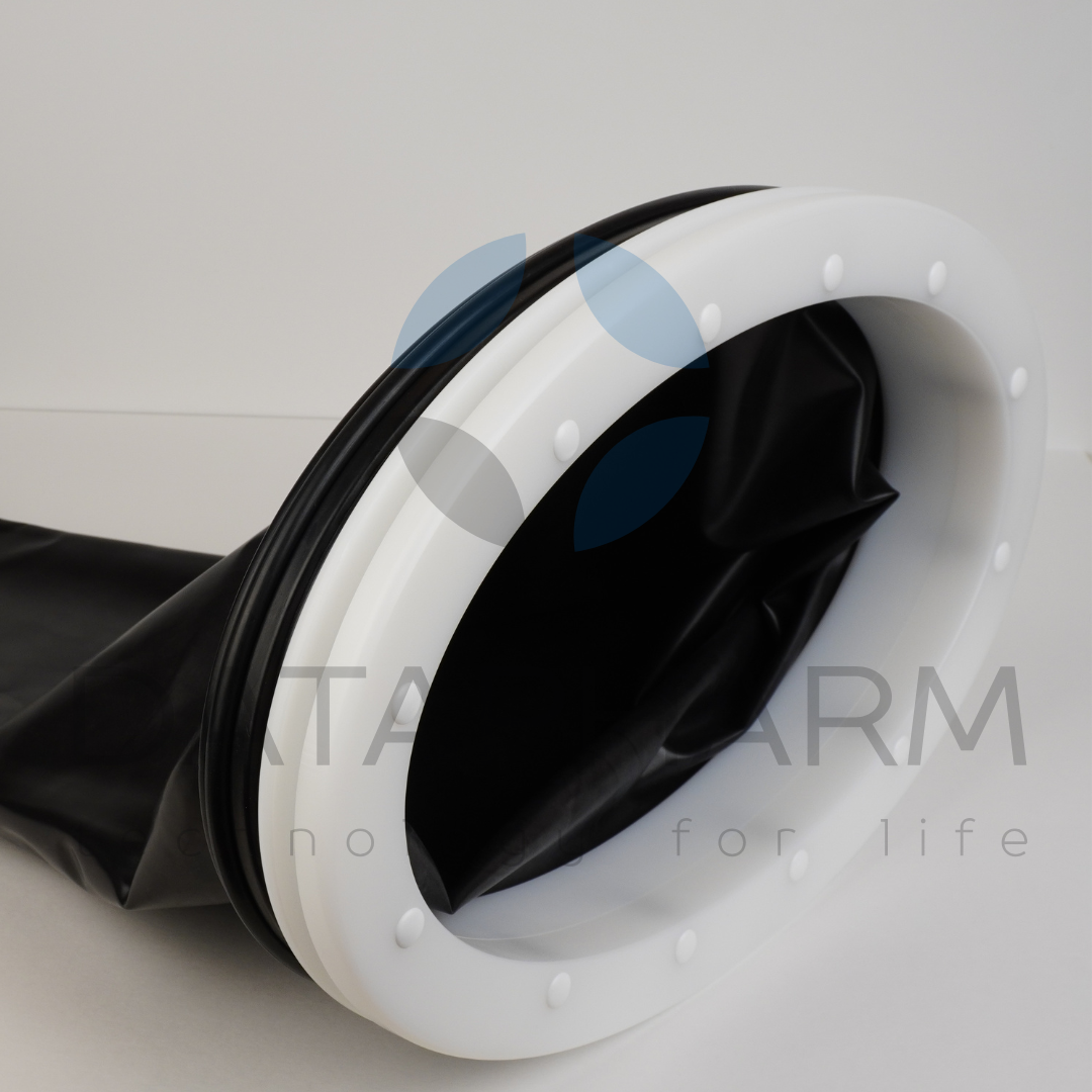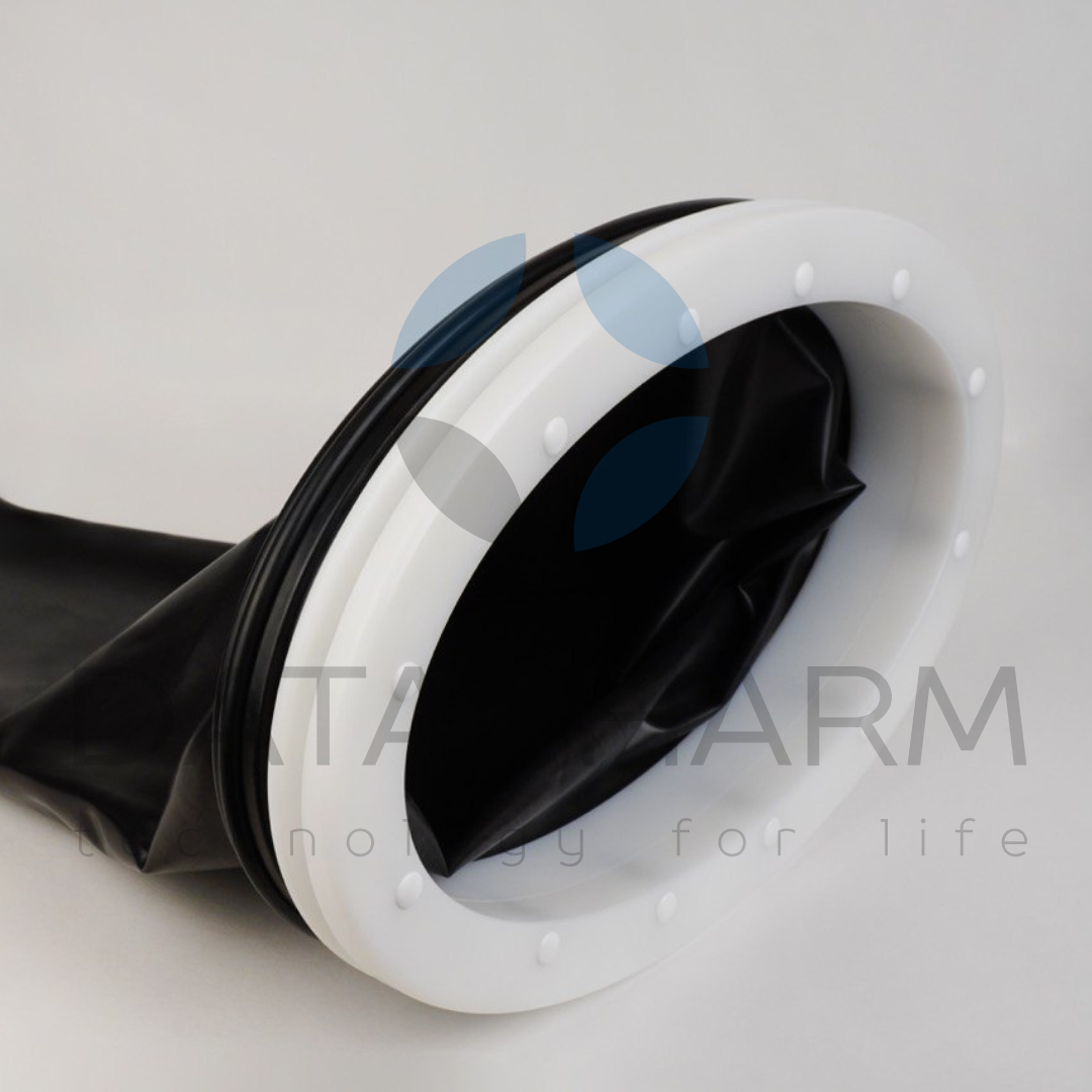Konstrukcja portu spełnia wymagania przemysłu farmaceutycznego oraz zapisy EU GMP Annex 1, gwarantując stabilne mocowanie rękawa, szczelność połączenia oraz ergonomię pracy podczas długotrwałej eksploatacji.