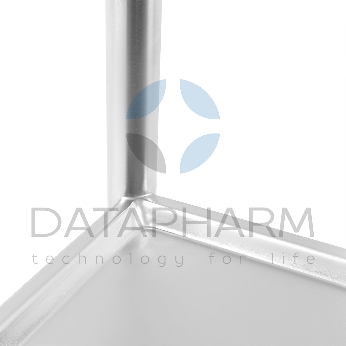 Стойка выполнена в мобильном исполнении и оснащена поворотными колёсами, что позволяет легко и безопасно перемещать её между производственными участками. Конструкция оптимизирована для регулярной мойки и дезинфекции и соответствует требованиям GMP и стандартам чистых помещений.