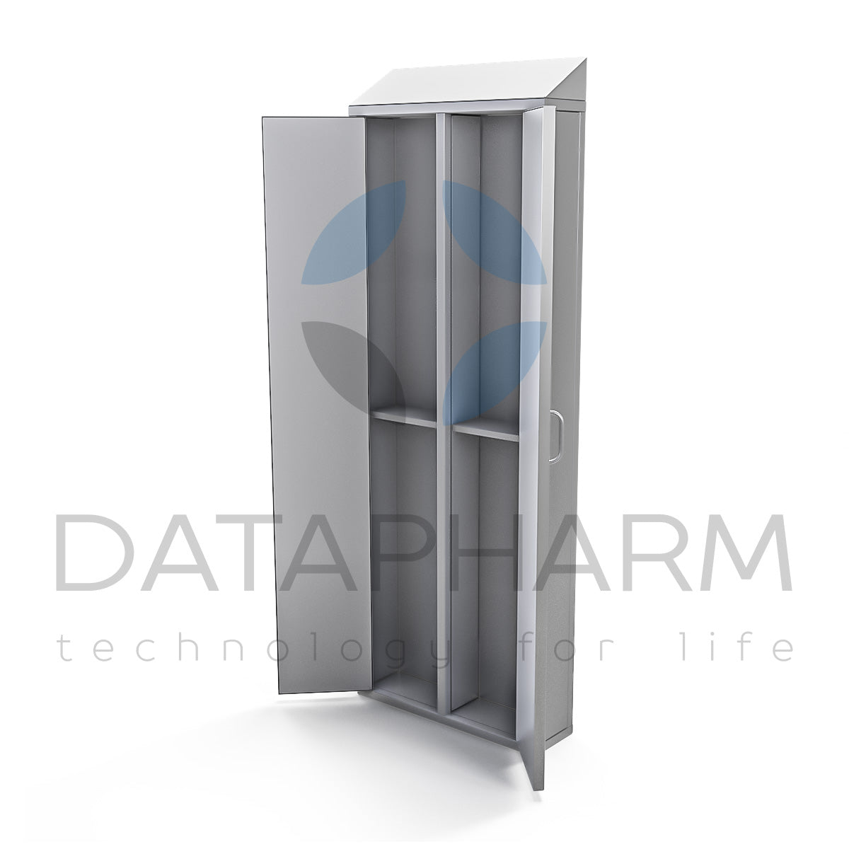 Оснащується розпашними дверцятами зі схованими петлями та можливістю встановлення індивідуальних замків. Підходить для приміщень ISO 5–8 та відповідає стандартам GMP.